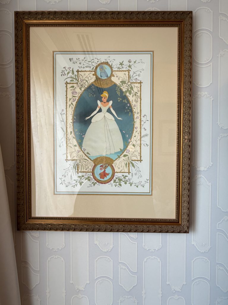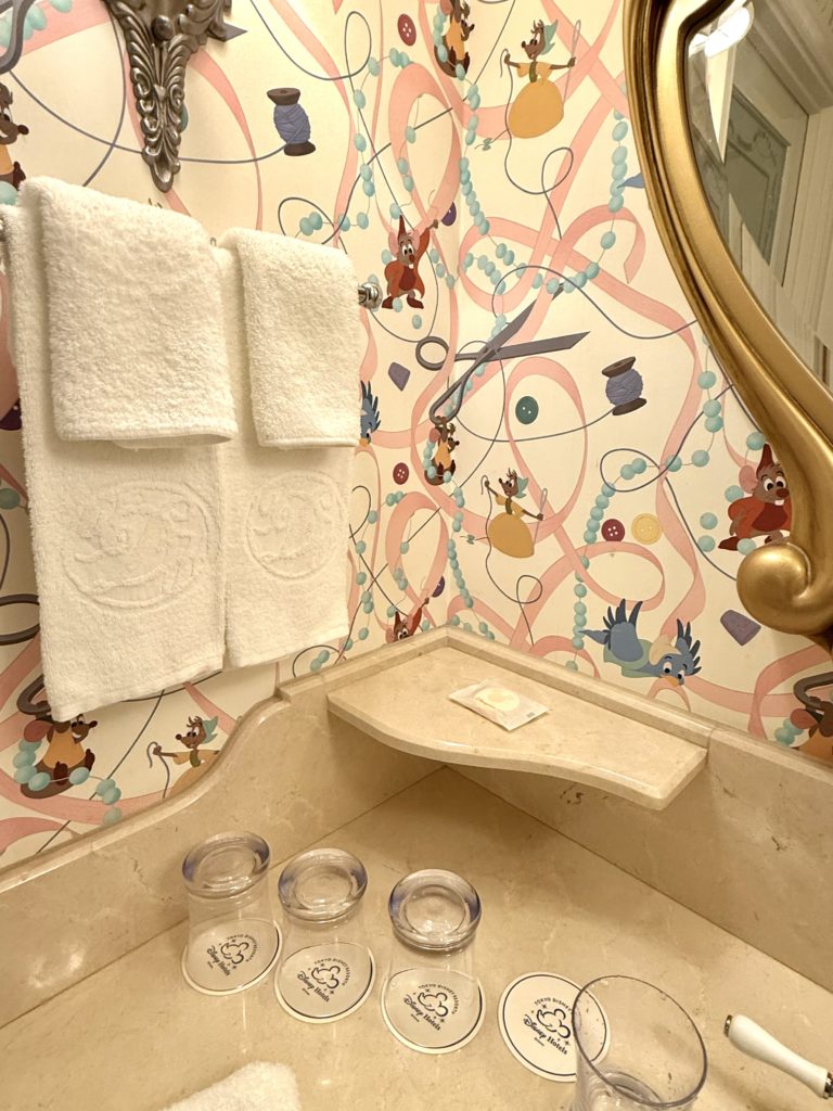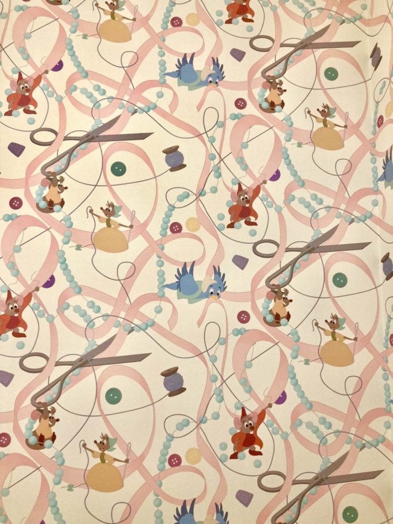 壁紙が可愛すぎですよね〜シンデレラのお友達のネズミ、「ガスやジャック、スージー、パーラのどちらか 笑」、小鳥が描かれています。