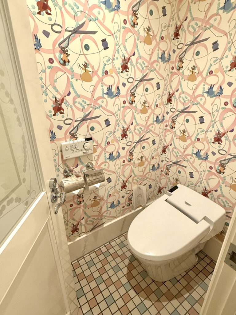 そして左手がトイレでした。こちらの壁紙もネズミたちで私はテンション上がりました笑